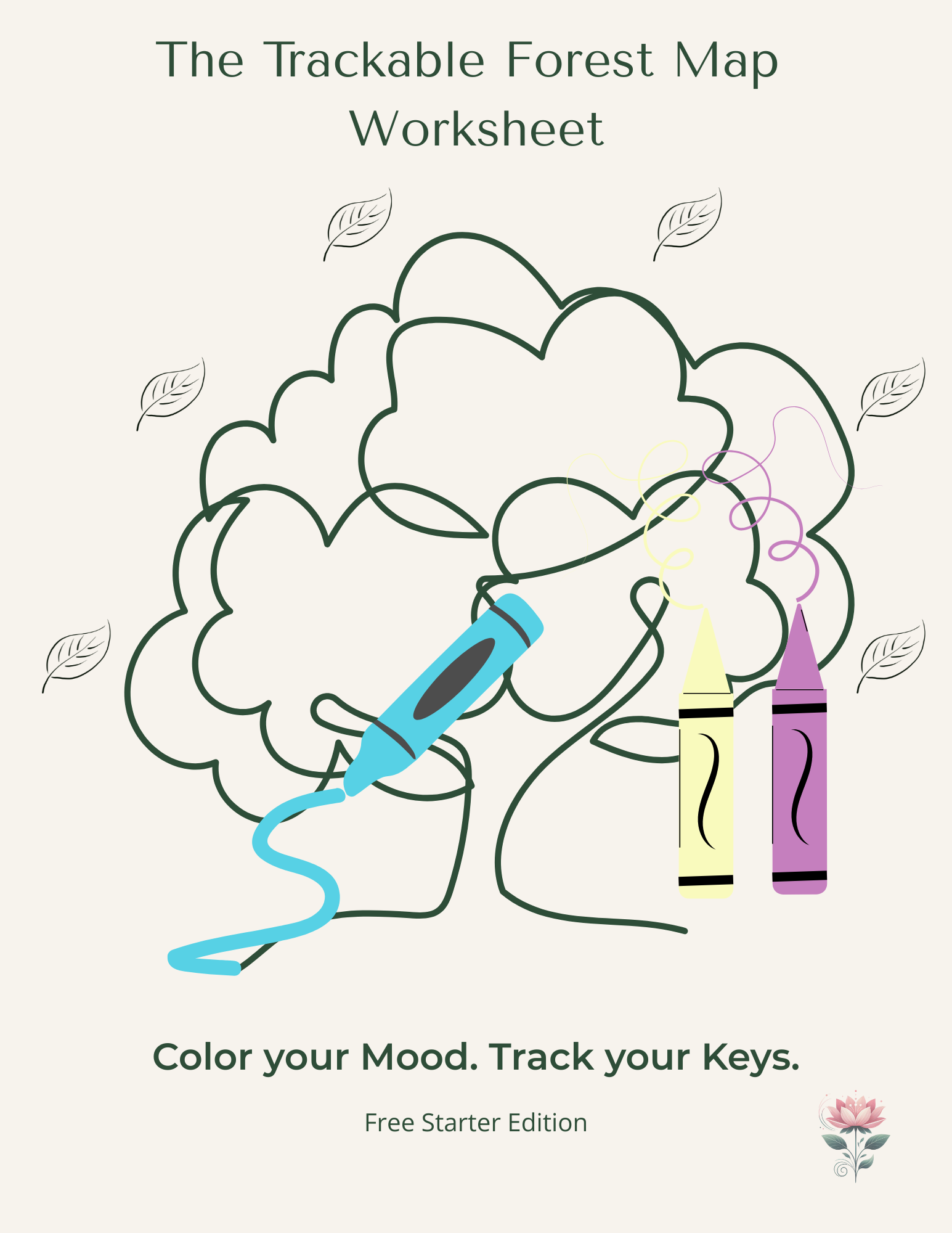 This free printable PDF helps you track your Forest Keys in the Forest of Healing Series. Includes space for 5 Keys with room to write reflections, color your mood, and mark your Tree stage. Print as many copies as you need and keep a clean file if you prefer digital, but printing is recommended since coloring is part of the journey.